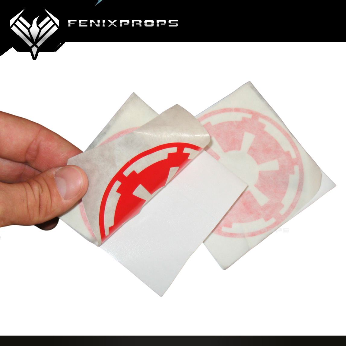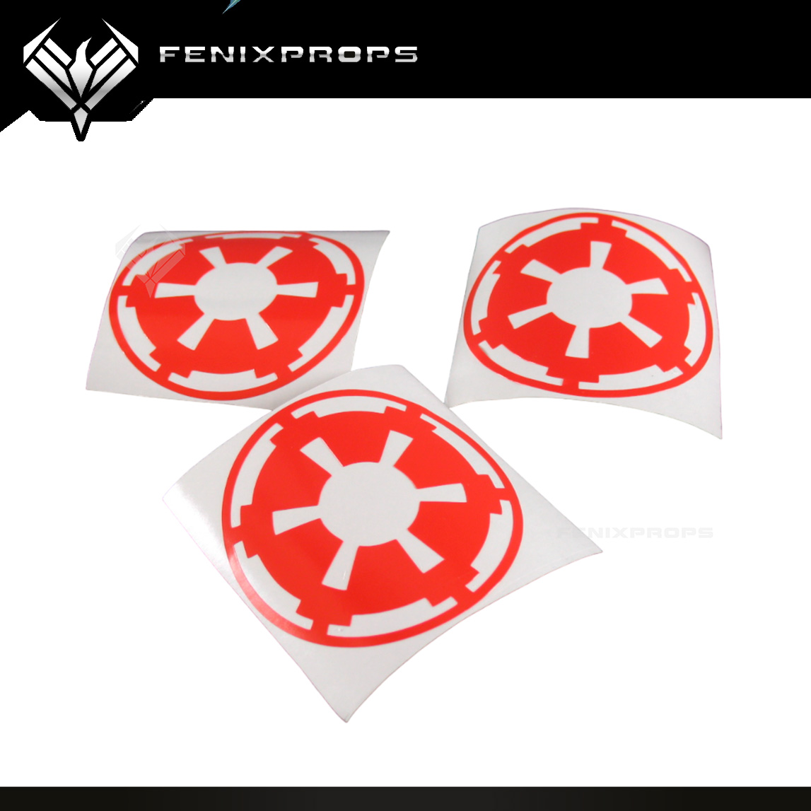Set of 3 decals ready to place in a curved surface with a transfer sheet on the back.